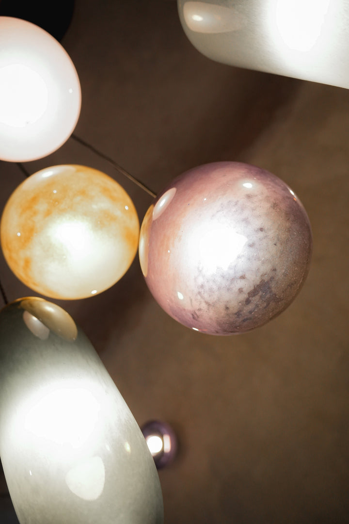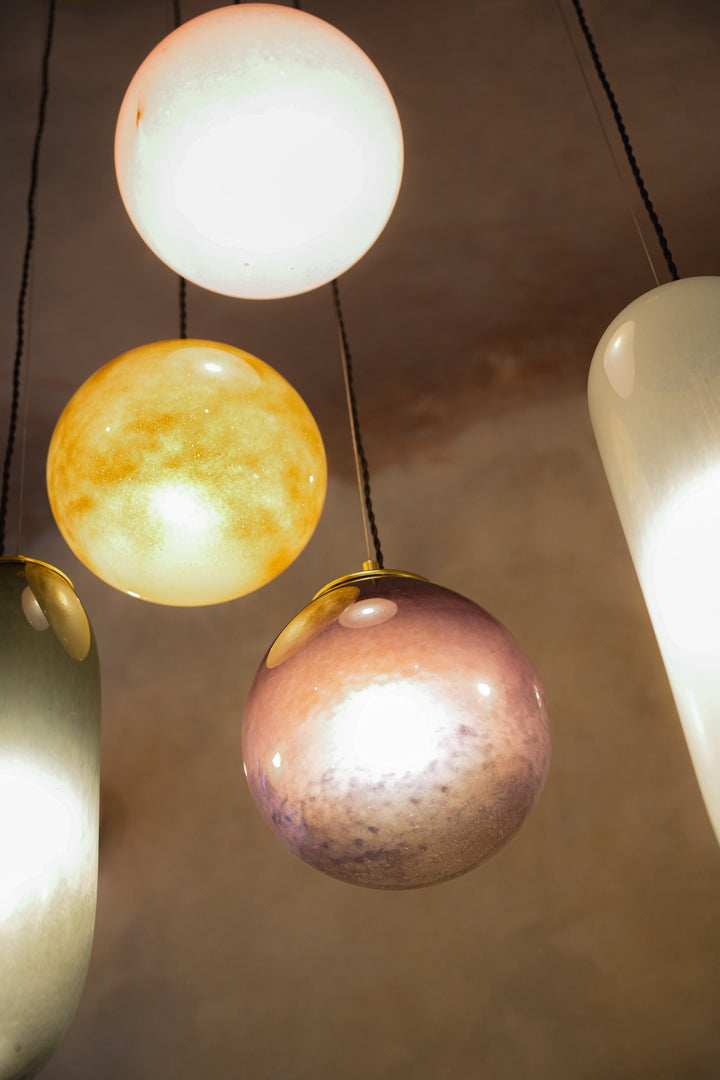 Each sphere is unique: the pattern, glass density, and small nuances of the surface are never repeated, making this lampshade not just a light fixture, but a small art object.